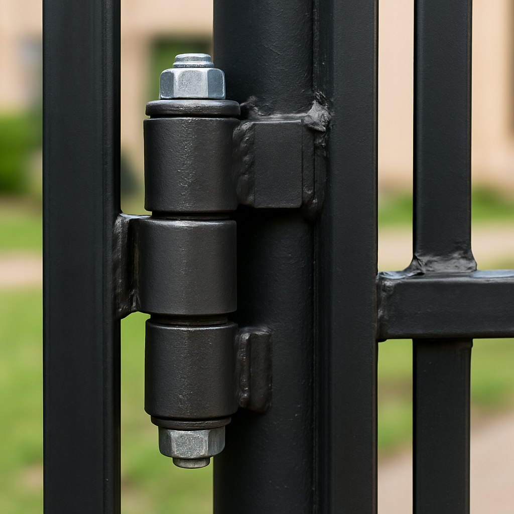 Aunque Aceros GCV no vende bisagras ni herrajes, son elementos clave para el funcionamiento del portón o acceso.
